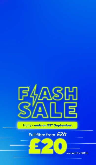Full fibre broadband from £26 a monthApril 2026 from £29 a month. April 2027 from £32 a month. £19 activation. 24m min commitment. |